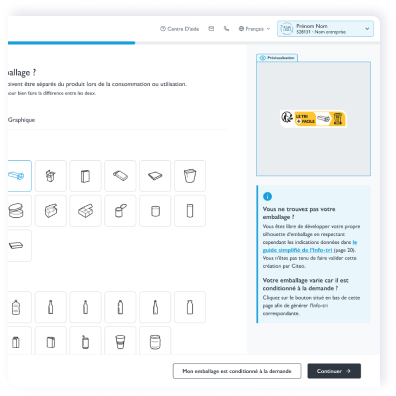 Répondez facilement à vos obligations en termes de marquage de règle de tri sur vos emballages grâce à Easy Info-tri, un générateur qui vous permet de créer et télécharger vos Info-tri prêtes pour impression en quelques clics depuis l’Espace client.