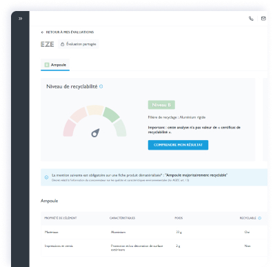 Il s’agit d’un score (de A à E) qui tient compte du taux de recyclabilité et de la compatibilité de chaque composant avec la filière. C’est le score global de recyclabilité.
