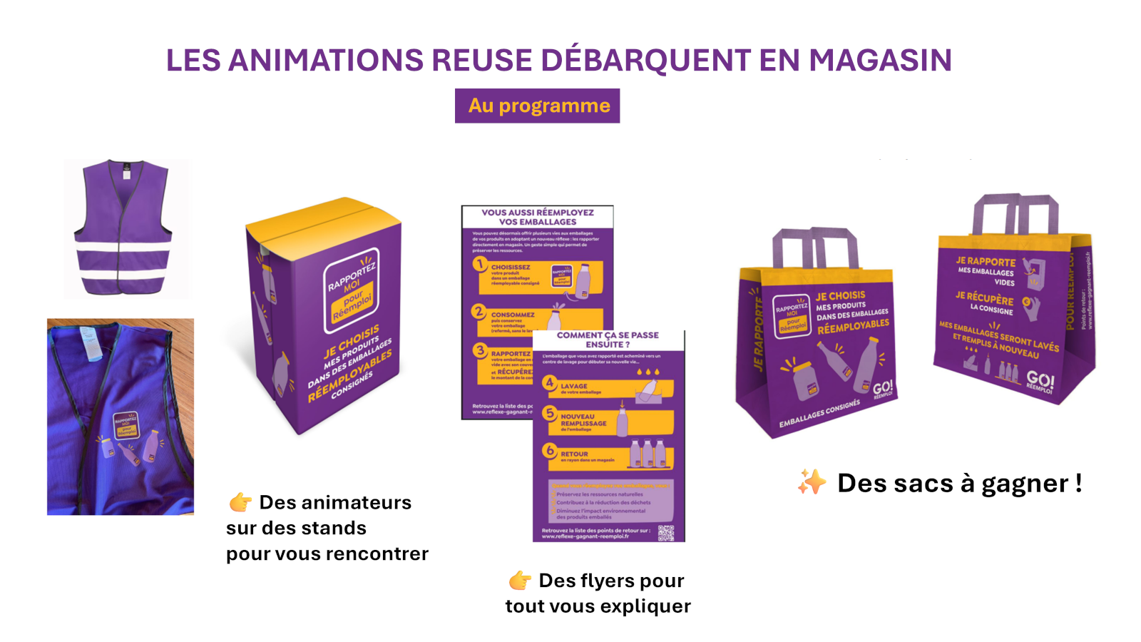 En mars et en avril, des animations font vivre l’expérimentation ReUse dans 200 magasins des Pays de la Loire, Bretagne, Normandie, Hauts-de-France.