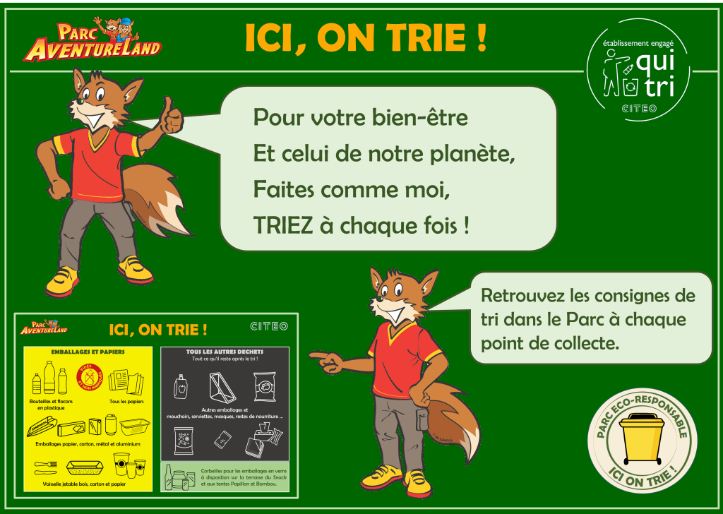 Objectifs ? Accueillir le public sur un espace propre et entretenu réduire les déchets abandonnés sur le parc ; sensibiliser le grand public à l’environnement et favoriser la participation écocitoyenne ; valoriser les déchets en incitant au tri.