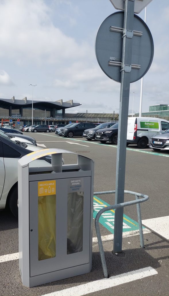 Le projet vise à mettre en place le tri dans l’aéroport à l’aide de corbeilles bi-flux installées sur l’ensemble du parcours passagers : des parcs de stationnement automobiles ou des accès en transports en commun, jusqu’à l’entrée dans l’avion.