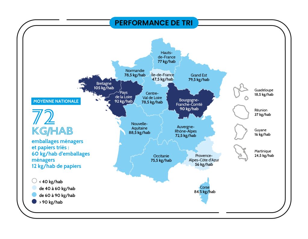 Grâce à la simplification du geste de tri, 100 % des habitants de l’Hexagone peuvent trier tous les emballages et papiers, depuis 2025. Et pour les territoires ultramarins d’ici à fin 2026.